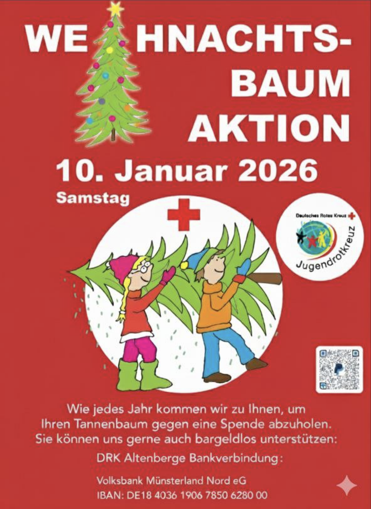 Es ist wieder soweit , am Samstag den 10.01.2026 sammeln wir wieder die Weihnachtsbäume gegen eine Spende ein.